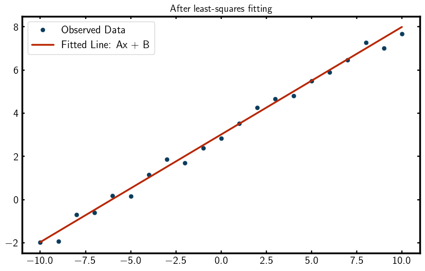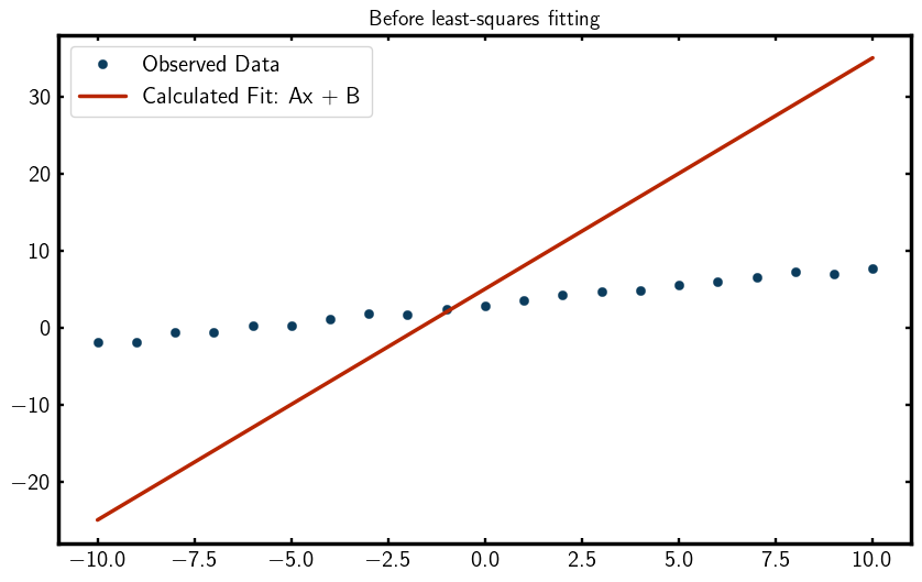 Now we are ready to perform the least squares fitting using the leastsq function from scipy.optimize.