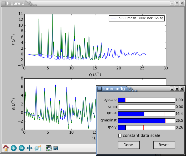 $ pdfgetx3 -c ni300mesh_300k_nor_1-5.gr --plot=fq,gr
